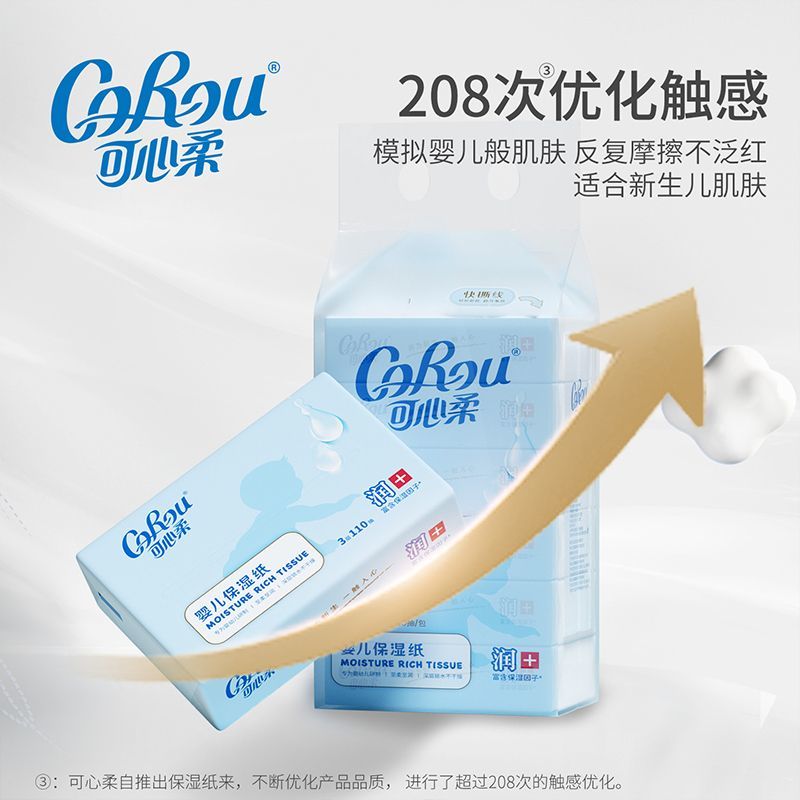 可心柔纸巾V9柔软纸巾柔肤超软宝宝抽纸鼻炎专用纸巾3层110抽整箱