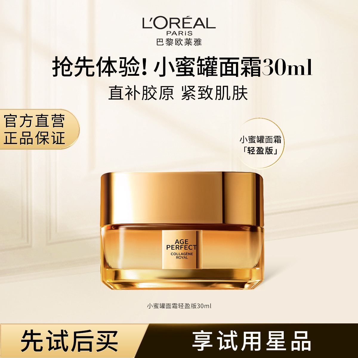 欧莱雅 【唯品试用】金致臻颜花蜜胶原轻乳霜30ml