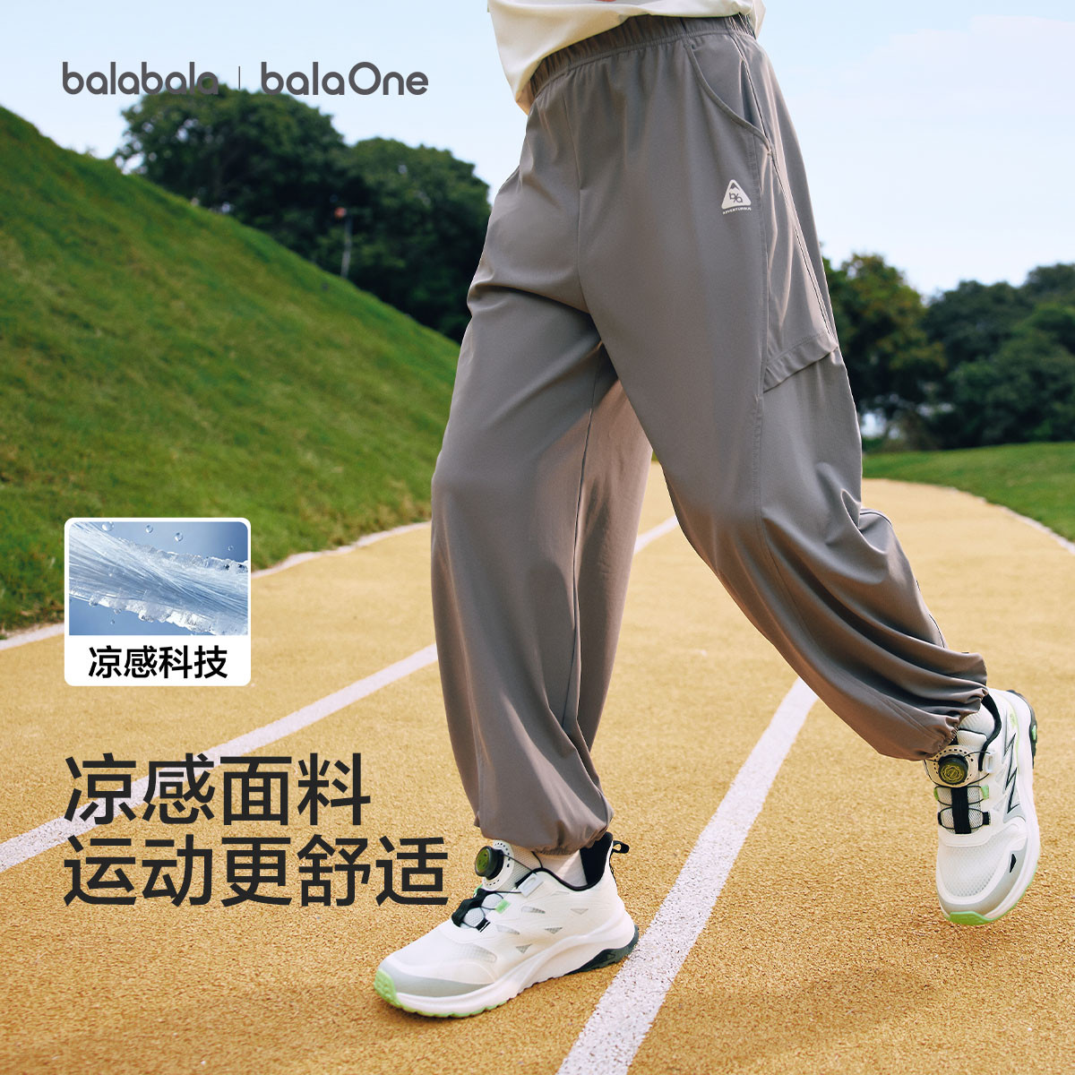 巴拉巴拉 凉感透气中大童儿童裤子男童女童拼接休闲裤春夏薄款体育课运动裤