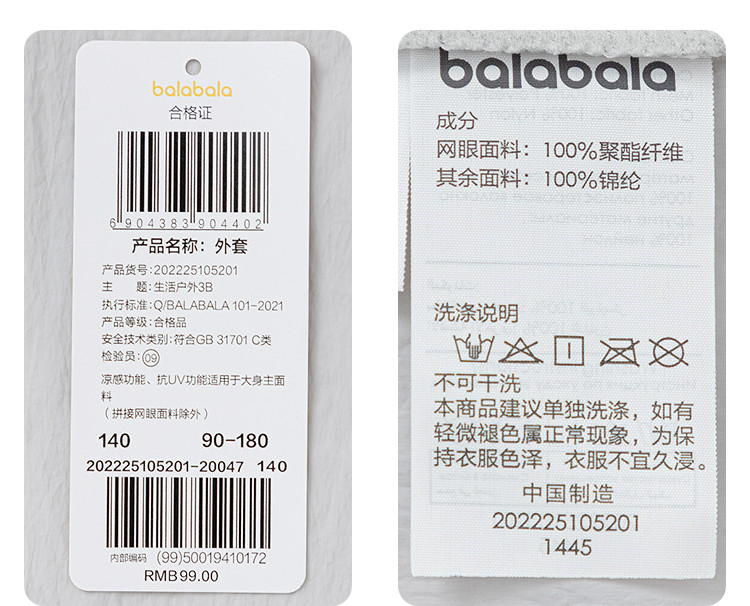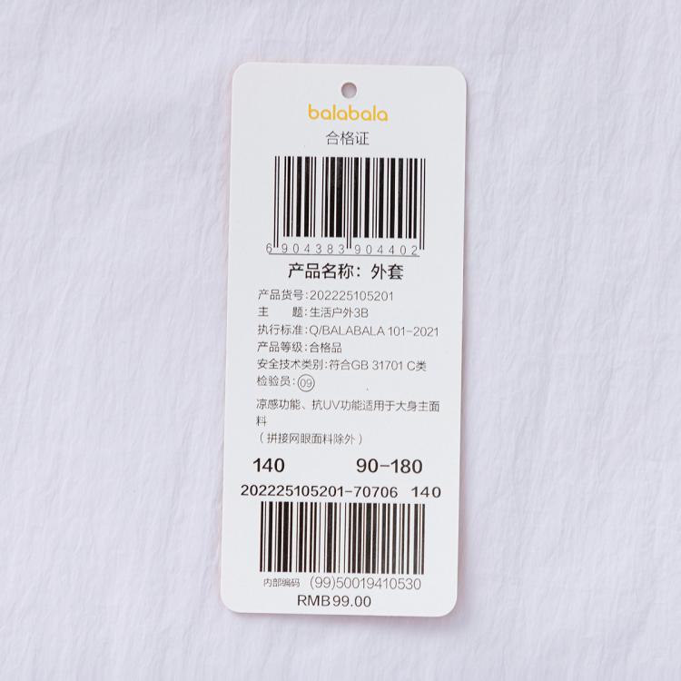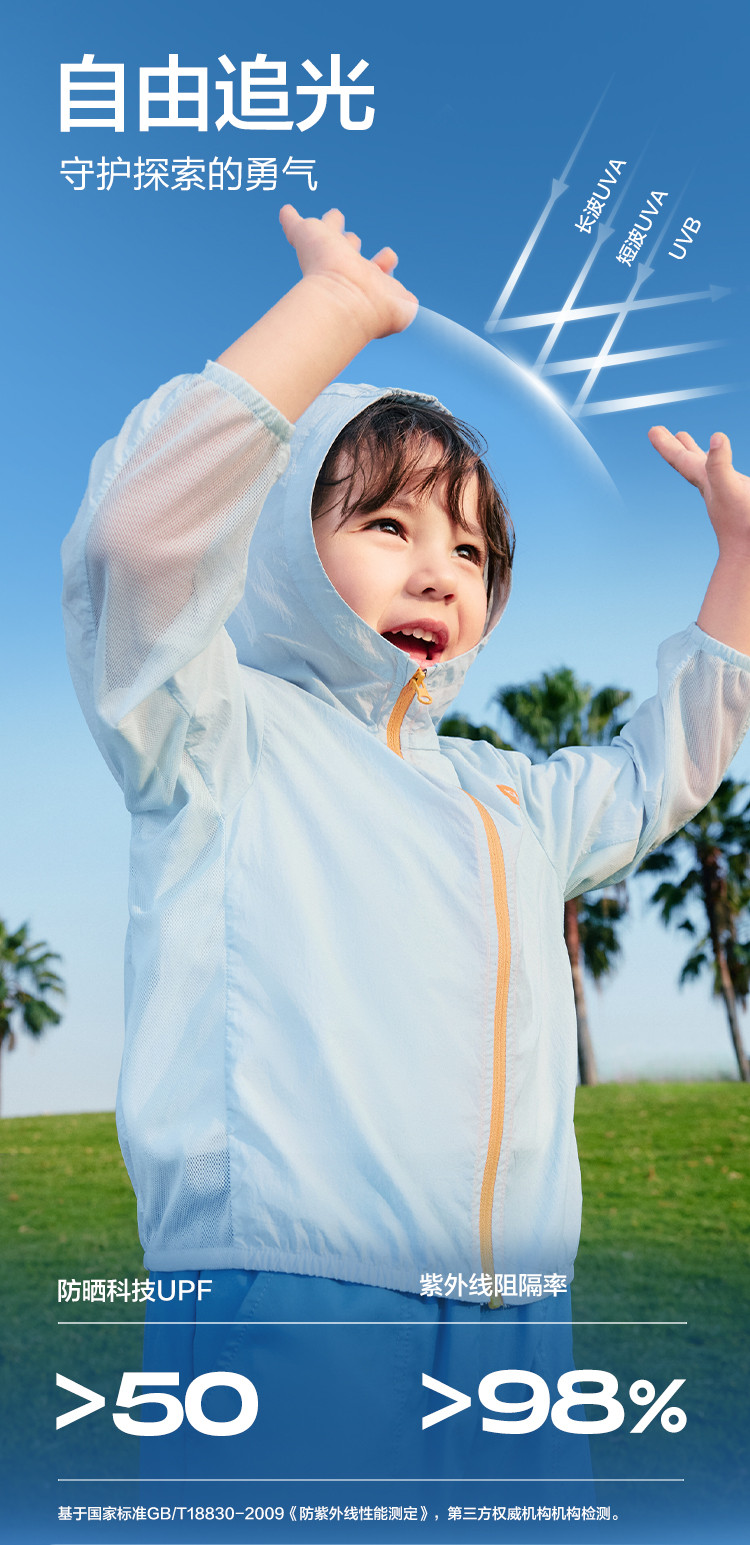 巴拉巴拉 UPF50+凉感透气中大童儿童防晒衣男童女童外套夏季轻薄外套 【售价】:¥89.9 下单链接: