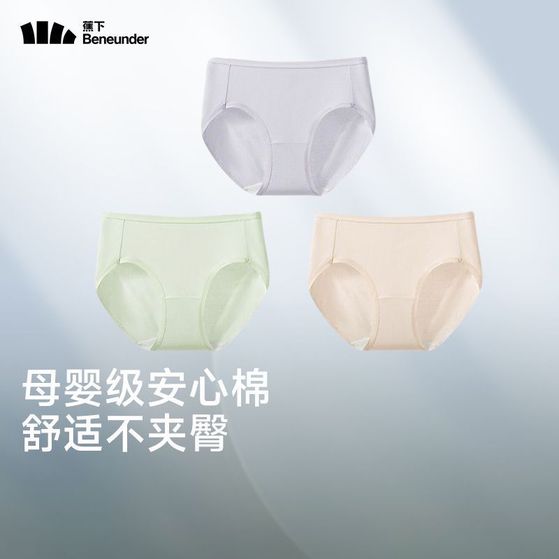 3条蕉下女士抗菌棉质内裤舒适A类母婴纯棉底档防夹臀中腰三角短裤