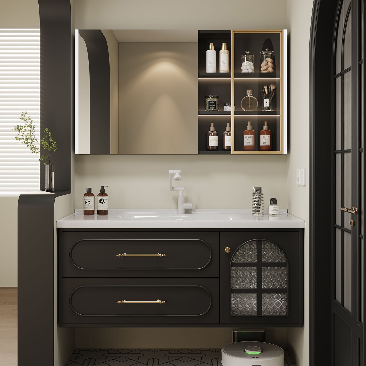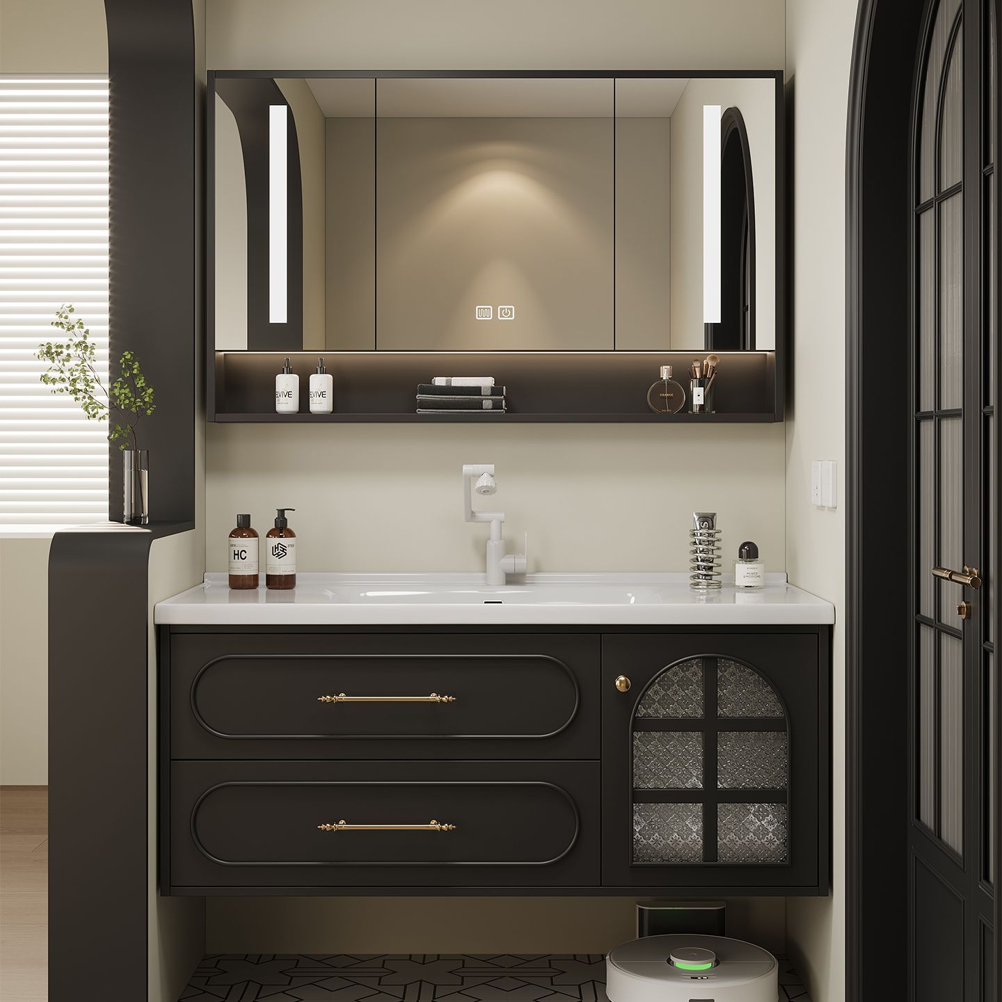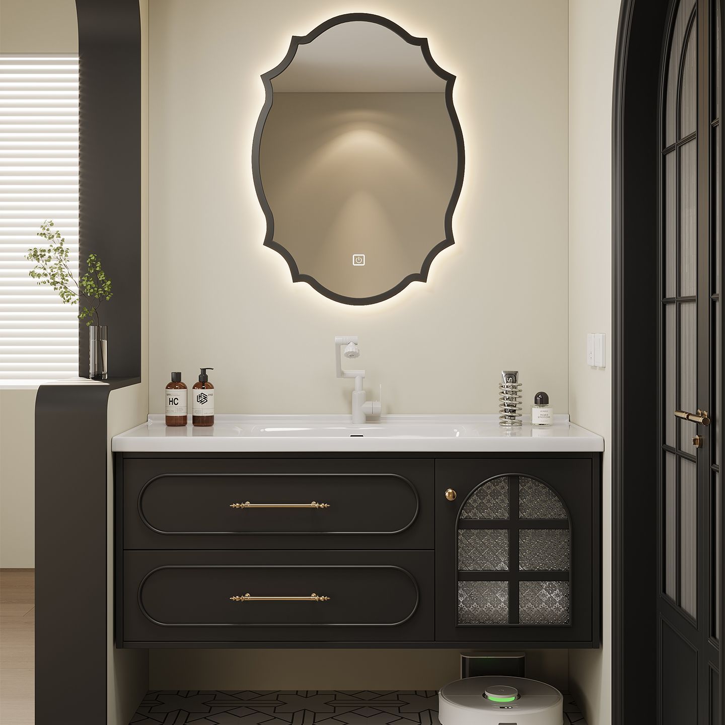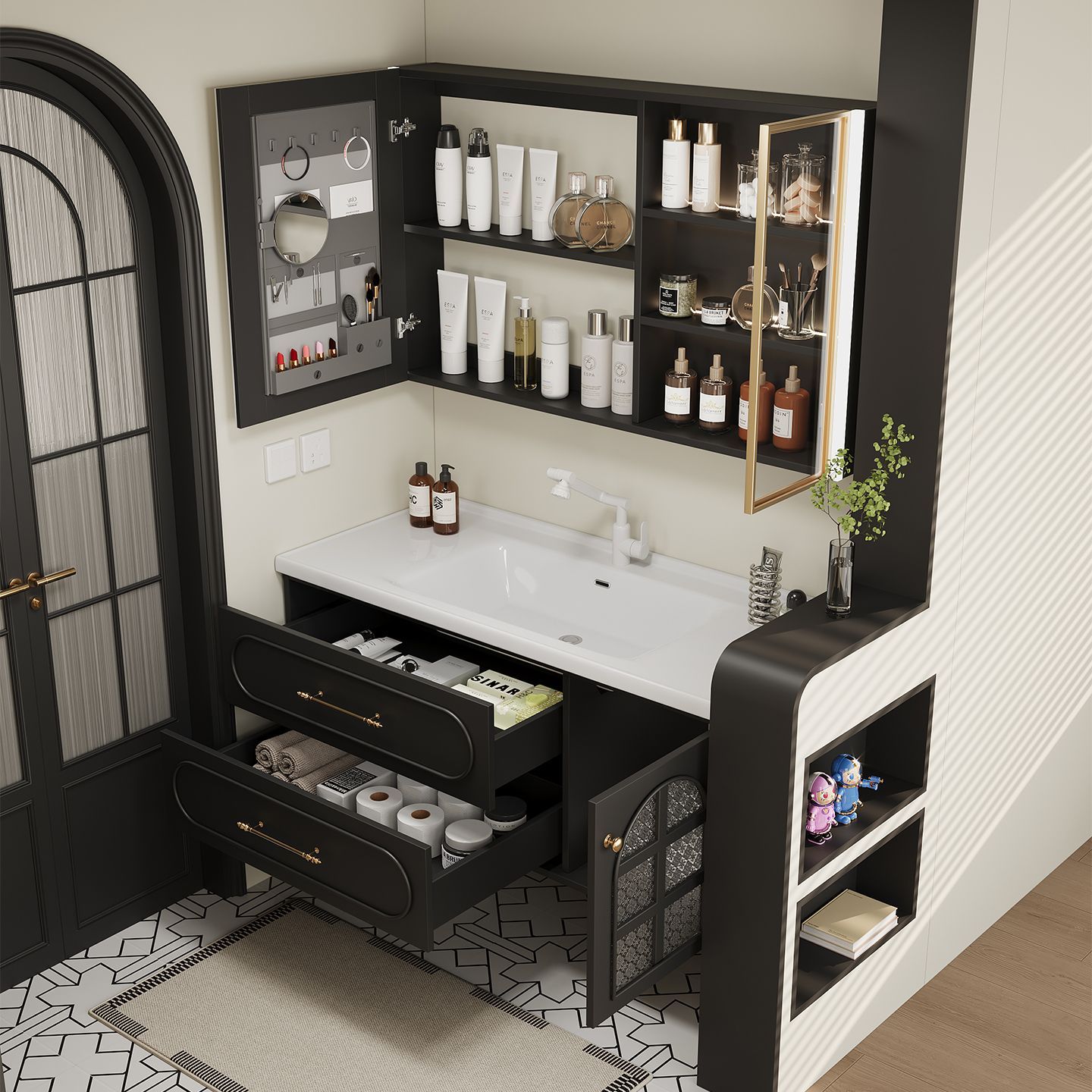 法式复古黑色浴室柜组合一体洗手池洗漱洗脸盆卫生间陶瓷卫浴定制
