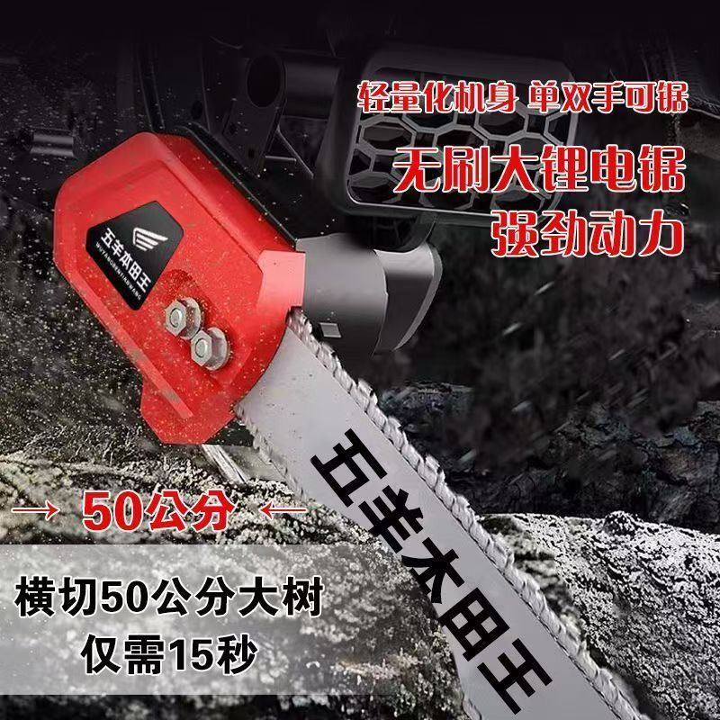 五羊本田王进口大功率锂电锯纯铜无刷电链锯手提便携户外砍树伐木