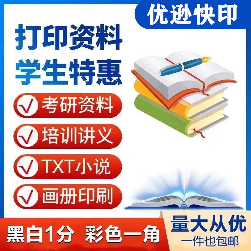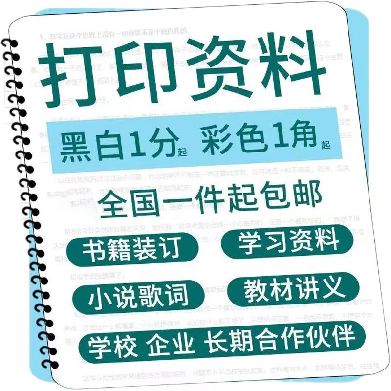 打印资料网上打印服务文件复印试卷a4黑白彩色装订学生便宜次日达