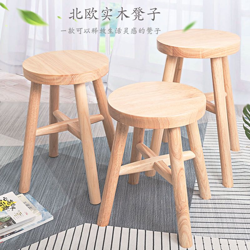 全实木圆凳子北欧家用耐用圆板凳榫卯实木凳子原木板凳圆形小木凳