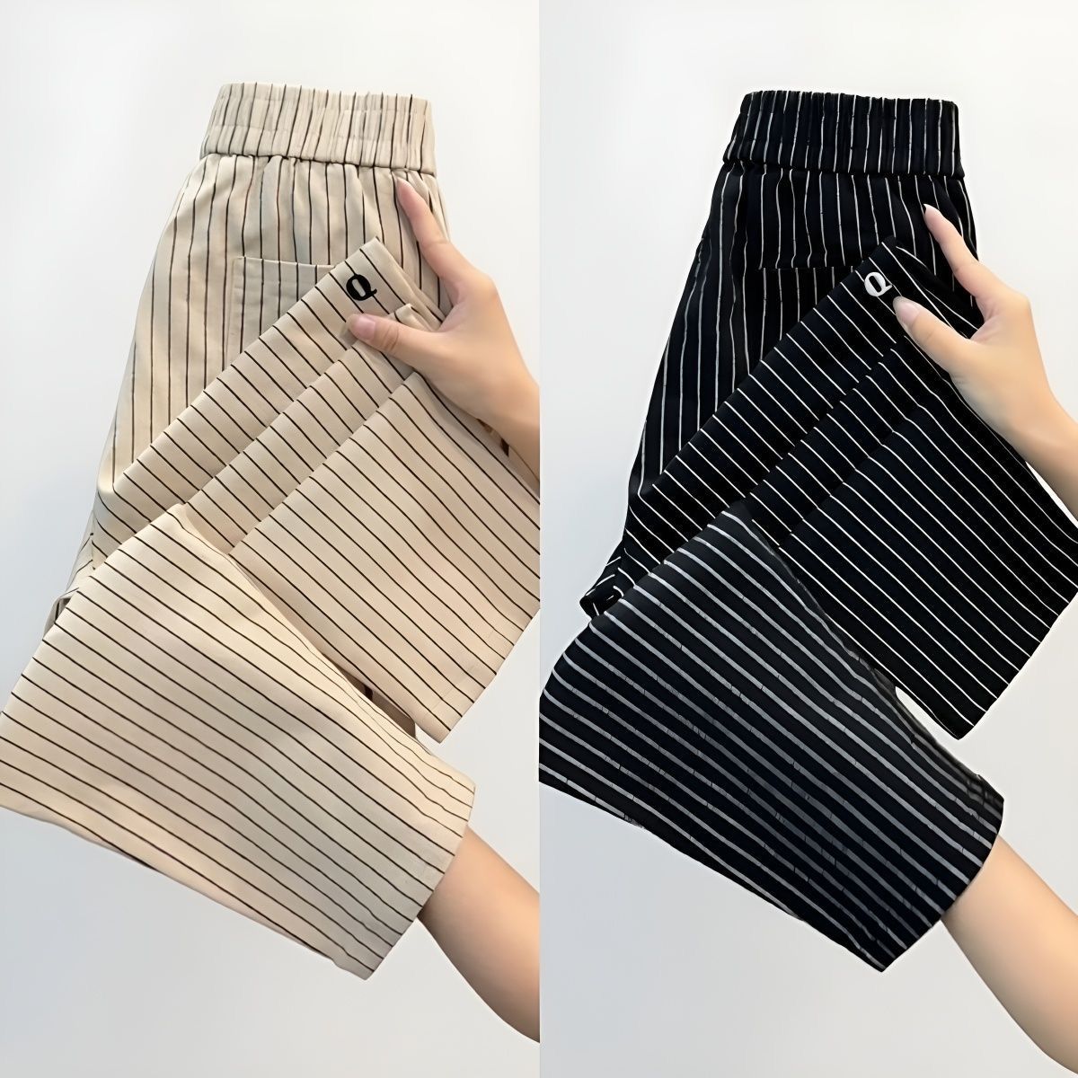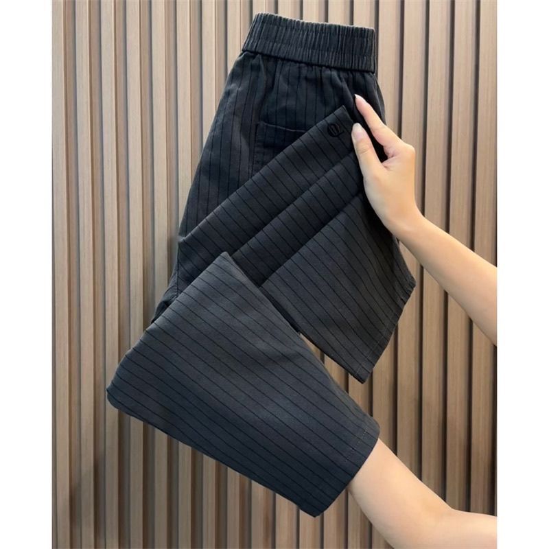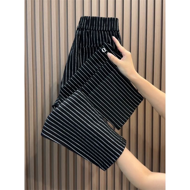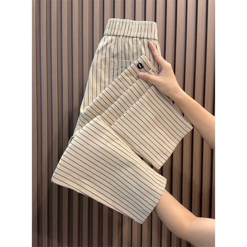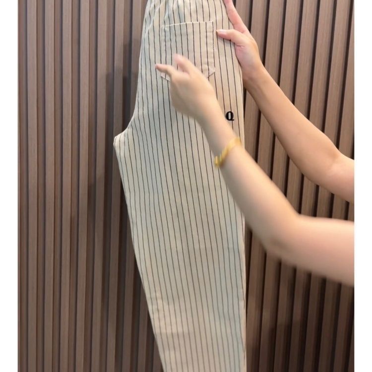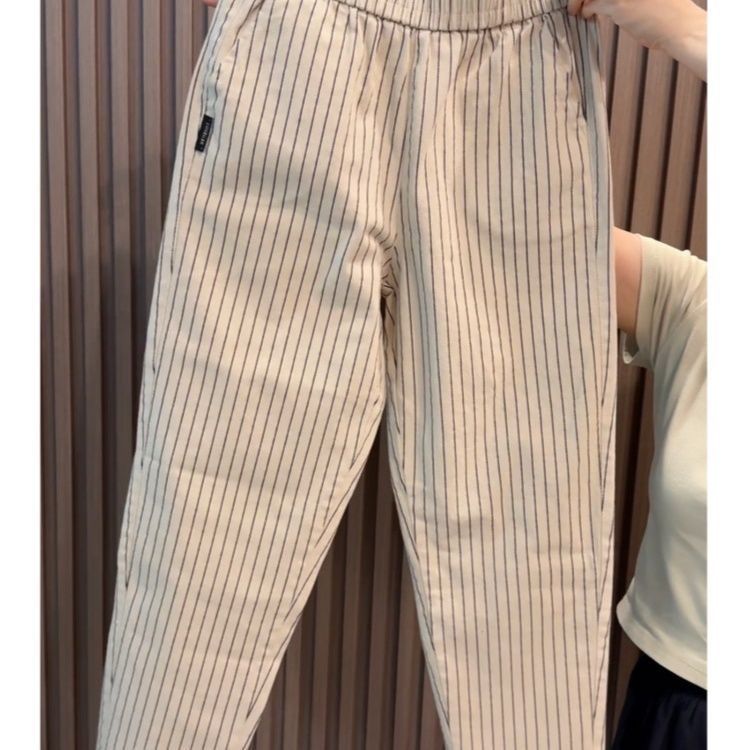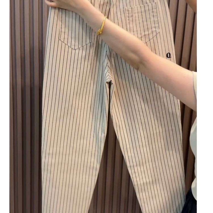 小个子条纹休闲裤新款时尚百搭小脚哈伦裤高腰女士洋气九分老爹裤